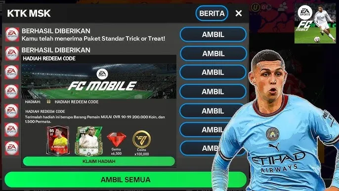 Kode redeem di FC Mobile adalah kode sekali pakai yang dapat ditukarkan melalui laman resmi di redeem.fcm.ea.com.